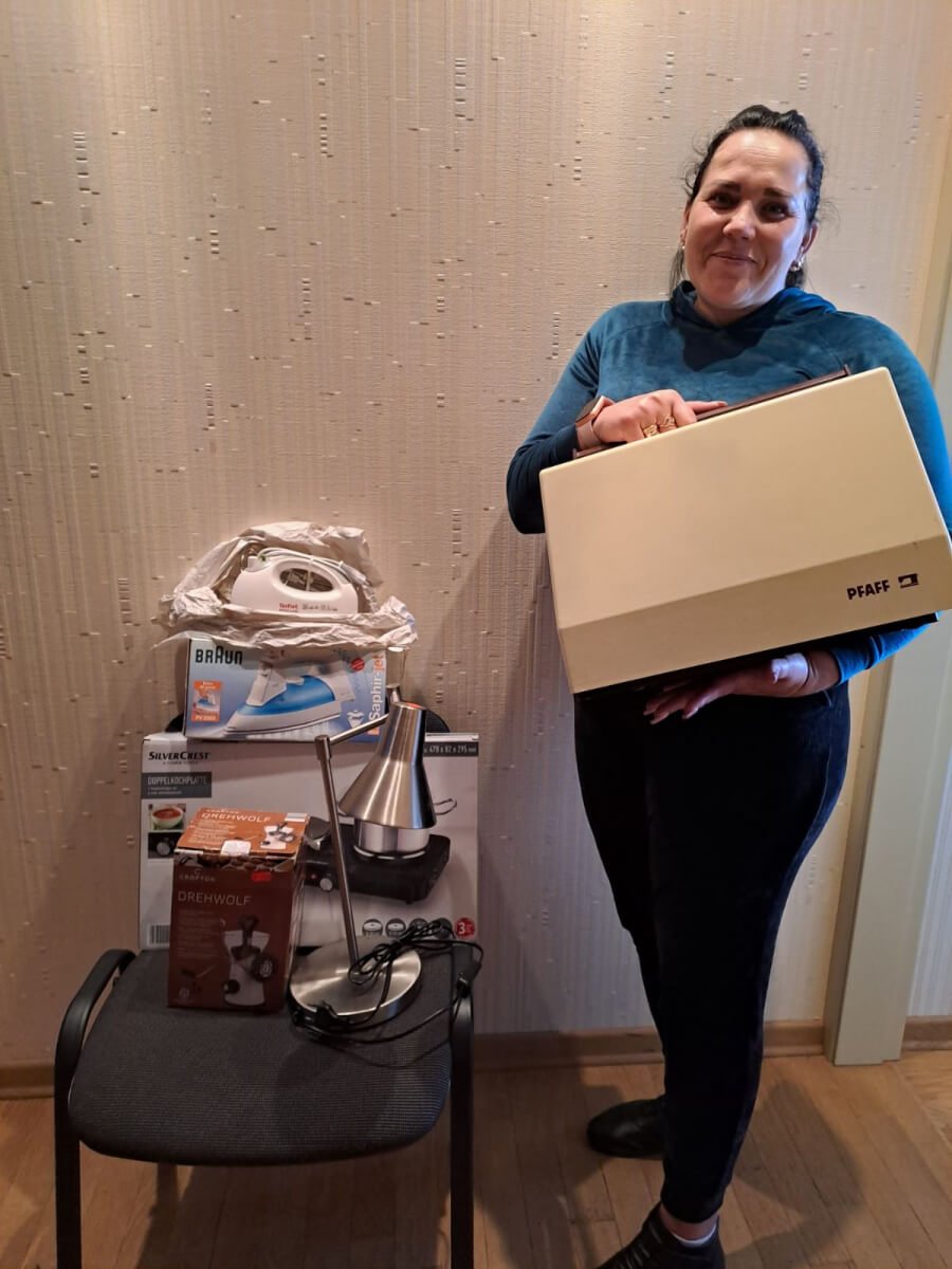 Today, the first items have already found their owners. Natalia and her children miraculously managed to leave the occupied territory at the beginning of the war. All their belongings remained there. Now the family is setting up their life in the Kyiv region. The sewing machine will help them earn money, as the girl is a seamstress, an electric stove, a mixer will help them cook, and other things will also come in handy.