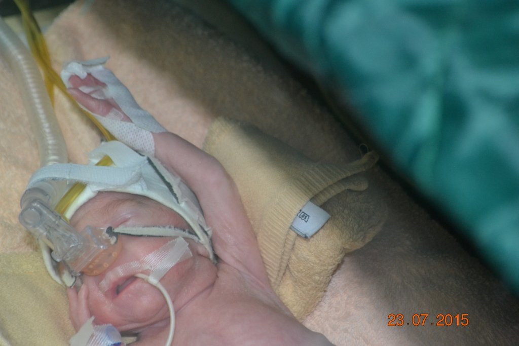 На 27 тижні вагітності 27 червня 2015 року з вагою 870 грам зростом 33 сантиметри передчасно народилася Аліна.
