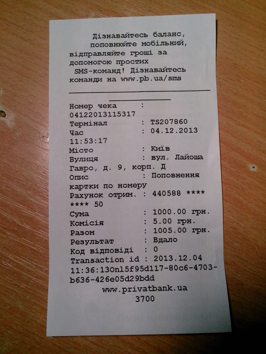 1) Дані дляпоповнення карти через Приват24 або в терміналах Приватбанку:
